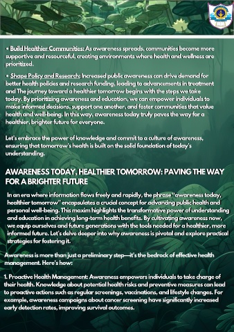 AWARENESS TODAY, HEALTHIER TOMORROW: PAVING THE WAY