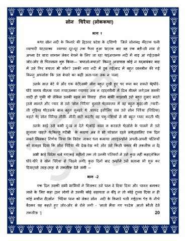 कहते थे| सोन गचरैया मीठी- मीठी बातें करती| िह पशु-पक्षक्षयों से भी बहत प्यार करती थी|