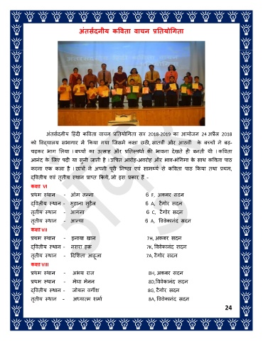 अंतसगदनीय दहंदी कविता िाचन प्रततयोगर्ता सि 2018-2019 का आयोजन 24 अप्रैल 2018