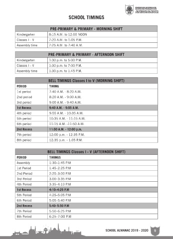 BELL TIMINGS Classes I - V (AFTERNOON SHIFT)