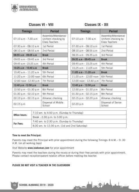Parents may meet the teachers during the recess or during their free periods with prior appointment.