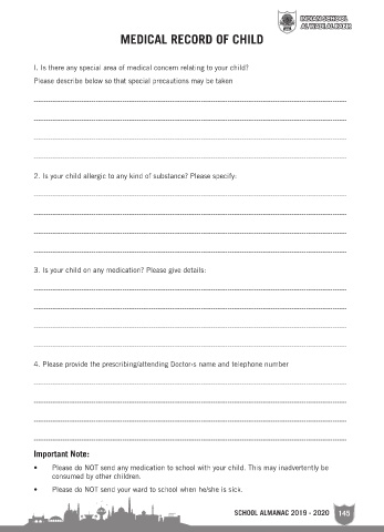 • Please do NOT send any medication to school with your child. This may inadvertently be