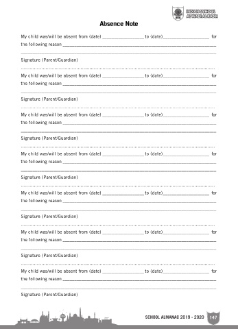 My child was/will be absent from (date) __________________ to (date) ____________________ for