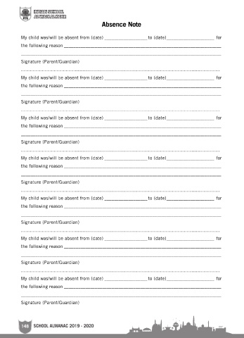 My child was/will be absent from (date) __________________ to (date) ____________________ for