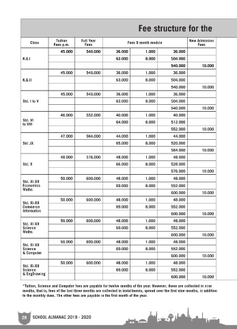 *Tuition, Science and Computer fees are payable for twelve months of the year. However, these are collected in nine *Fees are payable in advance every month. Penalty will be charged if the fees are not paid before 10th day of the