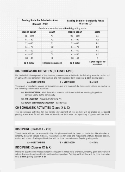 values develop strength and foster unity and co-operation. Grading on Discipline will be done term-wise