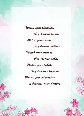 Watch your thoughts, they become words. Watch your words, they become actions Watch your actions, they become habits. Watch your habits, they become character. Watch your character; it becomes your destiny. 44 SCHOOL ALMANAC 2019 - 2020
