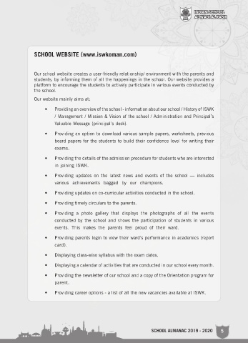 • Providing an overview of the school - information about our school / History of ISWK