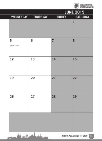 CALENDAR OF ACADEMIC ACTIVITIES 2019 – 2020