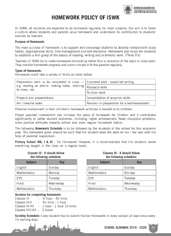 HOMEWORK POLICY OF ISWK