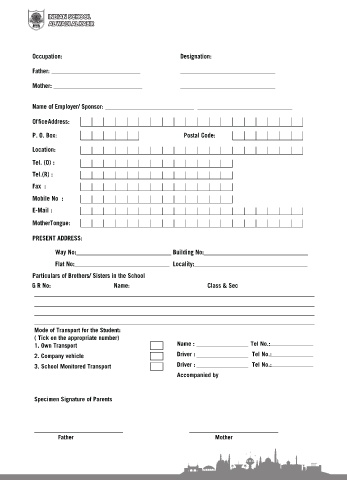 Specimen Signature of Parents