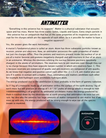 cels if it comes in contact with a matter. Thus, antimatters and matters annihilate each other