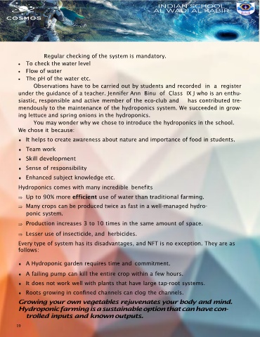 mendously to the maintenance of the hydroponics system. We succeeded in grow-