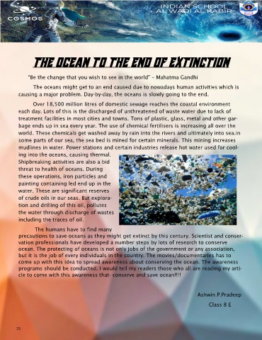 precautions to save oceans as they might get extinct by this century. Scientist and conser-