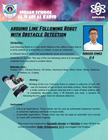 obstacles on its path. The use of the line following robot is to transport