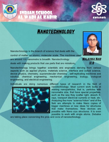 Nanotechnology is the branch of science that deals with the