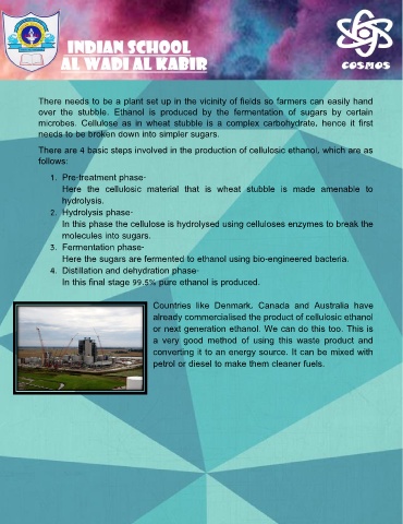 over the stubble. Ethanol is produced by the fermentation of sugars by certain