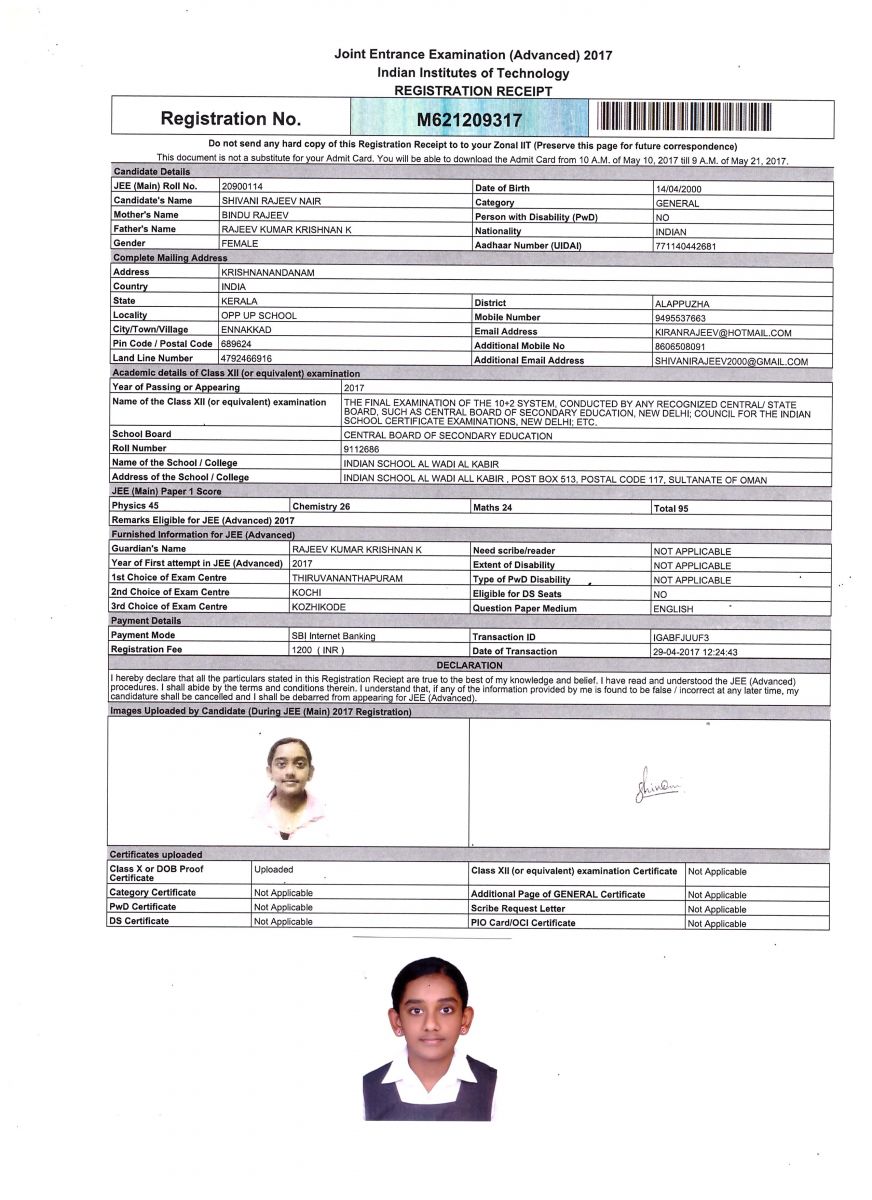 ISWK student of the batch 2016 -17 has cleared the IIT JEE 2017 in the first attempt by her hard work and got qualified for IIT JEE - Advanced.