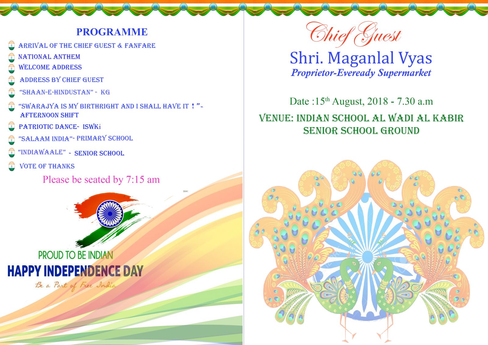Independence Day 2018 Invitation & Programme
