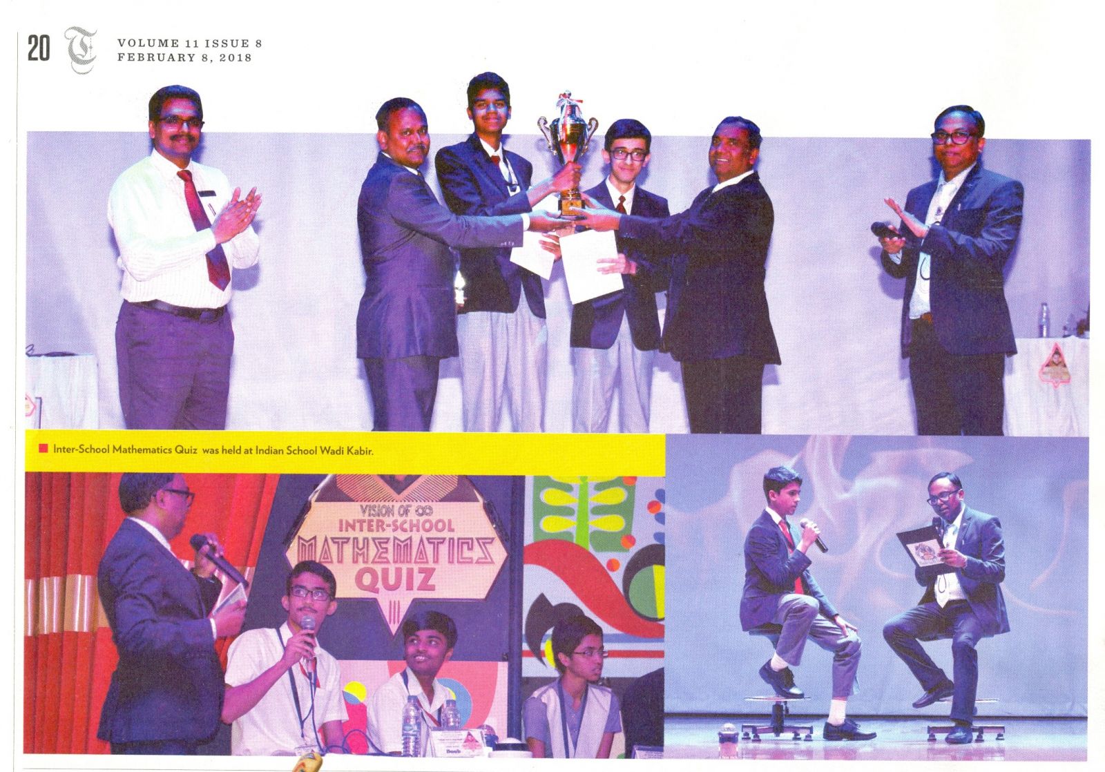 Press report on 3rd Season, Inter-School Mathematics Quiz 2017-18
